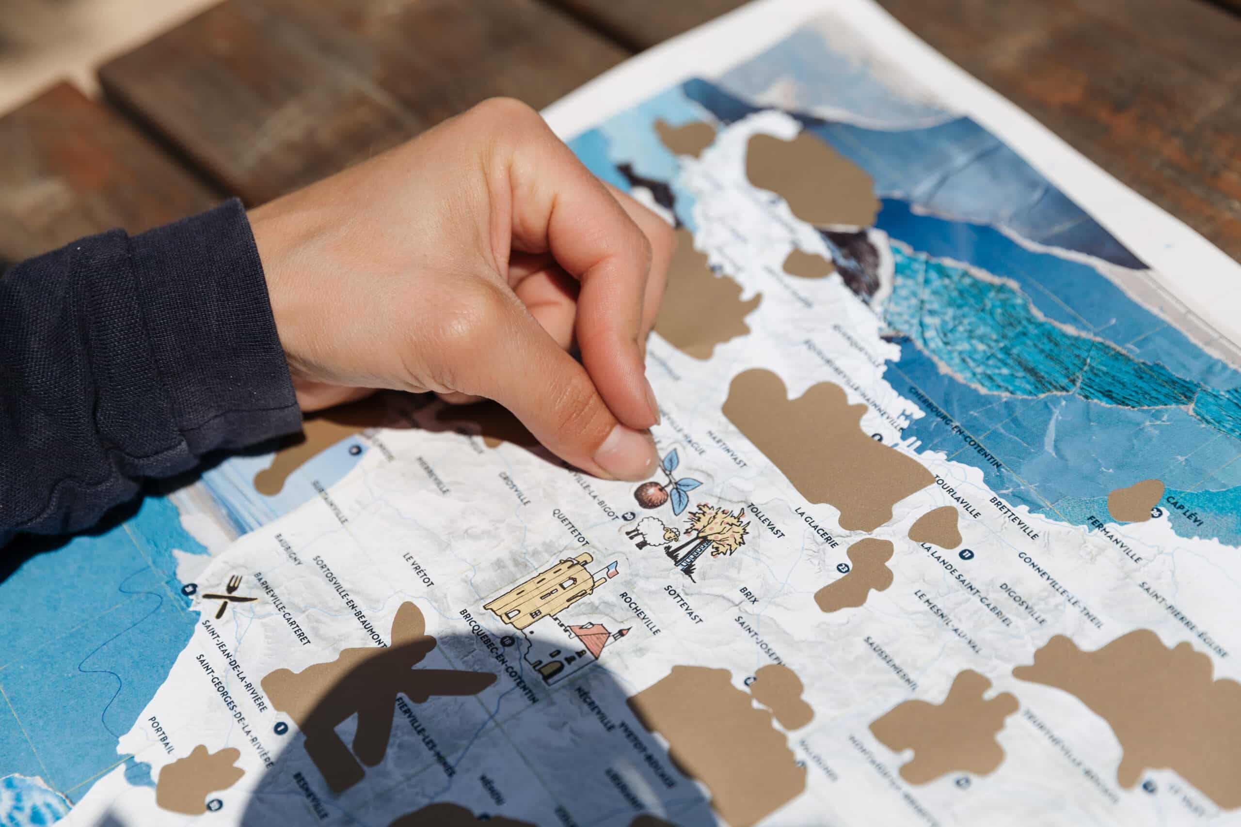 Cette carte à gratter est une invitation à parcourir le Cotentin autrement : entre sites incontournables et lieux insolites, laissez-vous guider par 33 endroits à révéler au fil de vos balades.